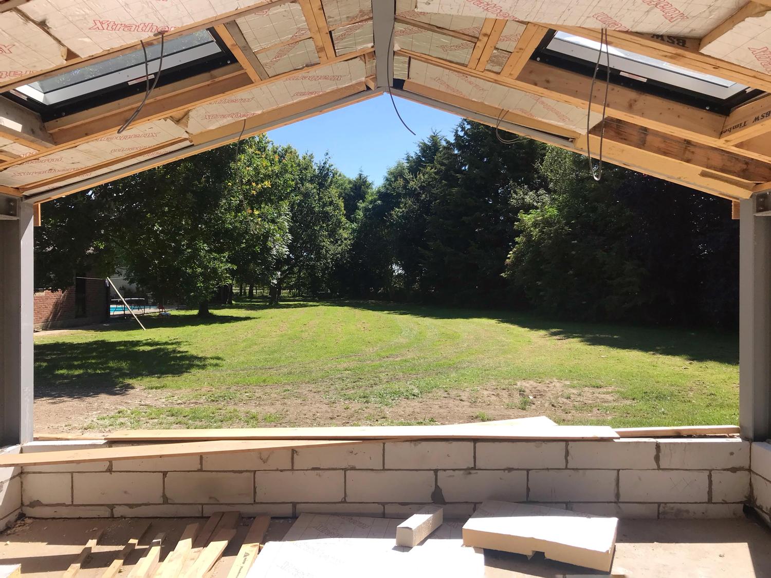 The west wing will continue to serve the family well when children and grandchildren are home for holidays and important family dates. While the east wing will cater for the everyday of the grandparents. What was left of the east wing was refurbished to become a boot room, and downstairs WC with a washing station for the dogs. A large utility room and pantry connects through a hidden door to a new modern kitchen, with a display area for the owners glass collection. A large new sitting and living areas fills out the rest of the original plan, with new glazed doors onto the sunny courtyard, new windows looking out to the paddocks to the east. The scheme grew to include a glazed orangery and dining room, bringing house amounts of sunlight into the original building, and uninterrupted views out too the garden and fields beyond.